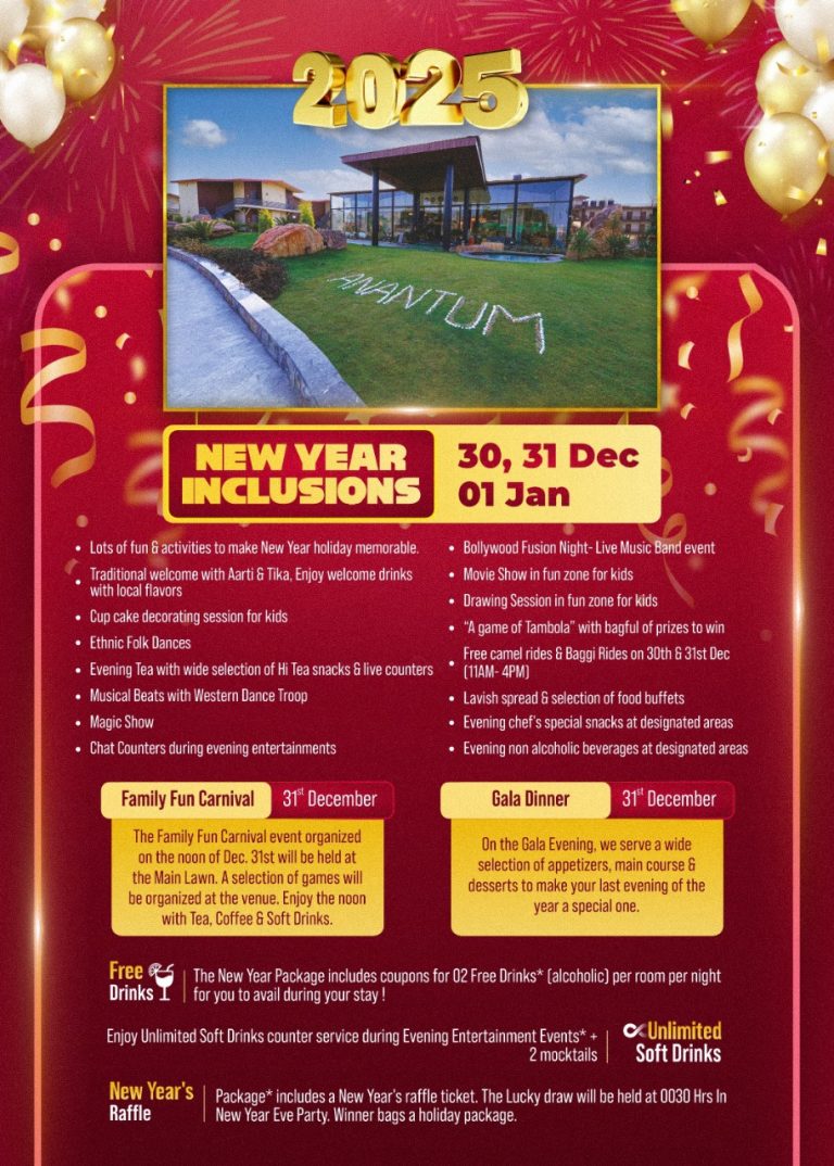 From heavenly and mouth-watering treats throughout the festive season to engaging games and activities, vibrant and lavish decorations, to relaxing and cosy stays, we offer you a festive atmosphere worth falling in love with. What we have shared above is only a glimpse of how exciting this Christmas and New Year will be. To experience all this and more fun in real, be our guests and make a booking with the Anantum Gateway Resorts & Spa now. Our peaceful and lavish abode is awaiting your presence for a glamorous Christmas and New Year celebration, where festivity blends with nature to welcome 2025 in a unique style.