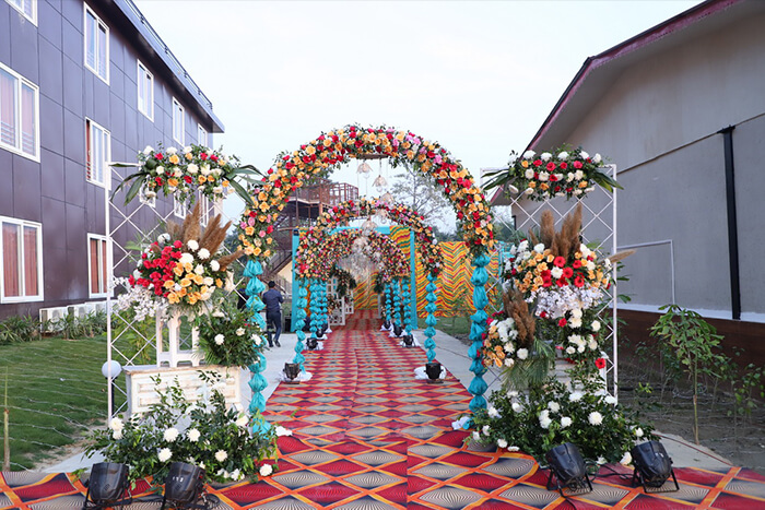 At Anantum Gateway Resorts & Spa each venue boasts a natural essence. Inbuilt modern technology, latest theme decorations, professional friendly service & abundant free parking availability, makes Anantum Gateway Resorts & Spa one of the most preferable & popular choices for Beautiful Pre-Wedding Moments in Corbett. We cater for assorted functions and events – including gala dinners, intimate gatherings, weddings and anniversaries. The largest pillar-less hall of 10000 sq. ft can seat 1000 guests with a stage & dance floor. Poolside Haldi ceremonies with a breathtaking view of the mountains could be a dreamy affair. Our gardens provide an ideal setting for your Mehendi& Sagan ceremonies and reception.