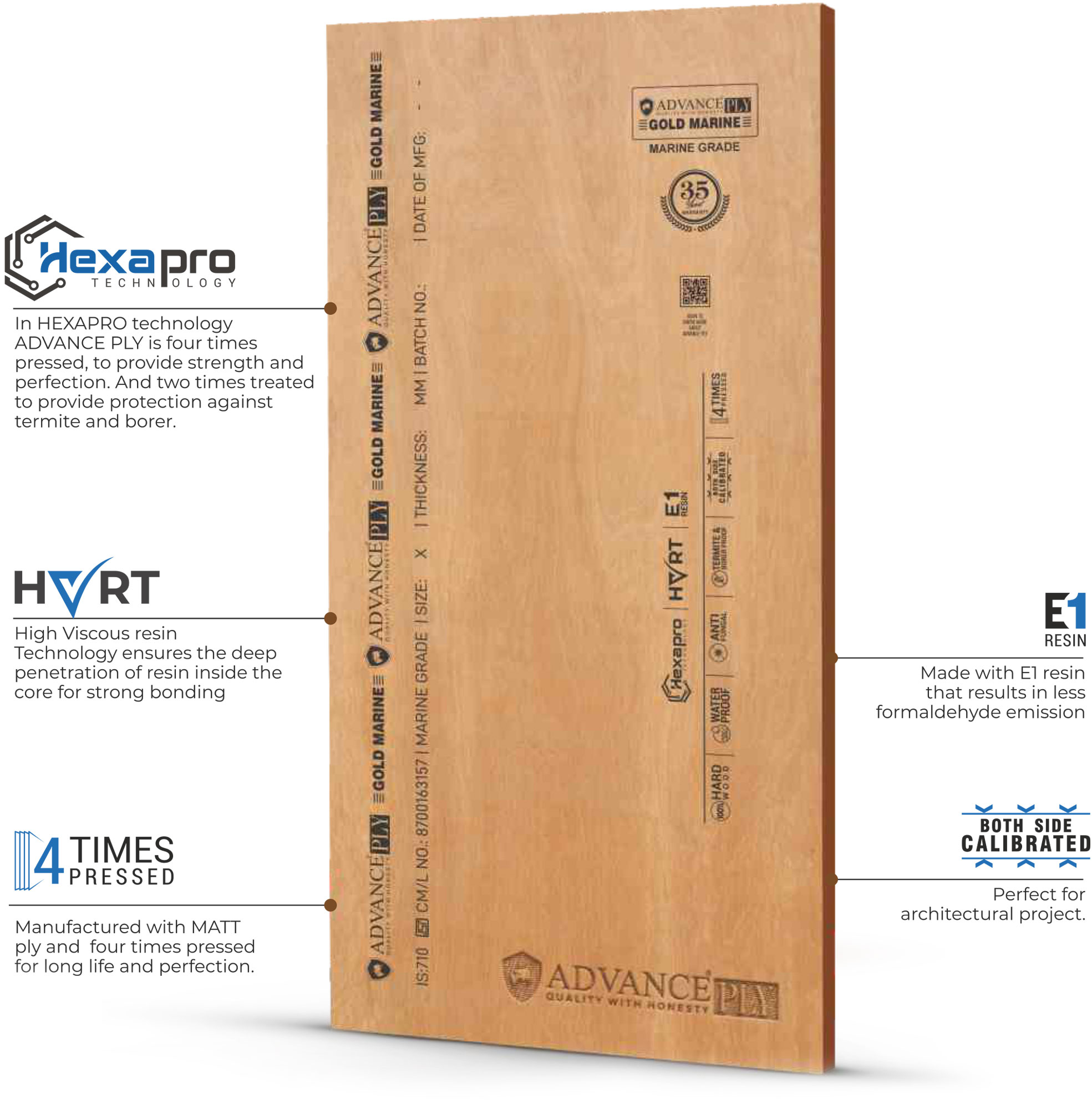MADE WITH E1 GRADE RESIN, BOILING WATER PROOF, MARINE GRADE, IS:710, FULLY HARDWOOD CONSTRUCTION