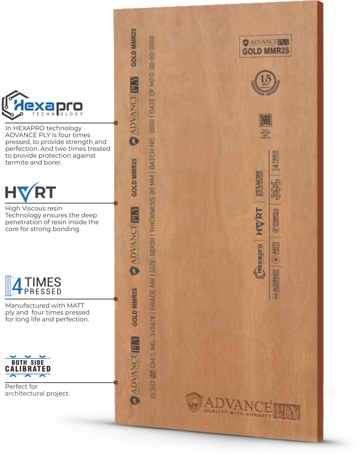 MOISTURE RESISTANCE, MR GRADE, IS:303, BONDED WITH HVRT RESIN, BOTH SIDE CALIBRATED.