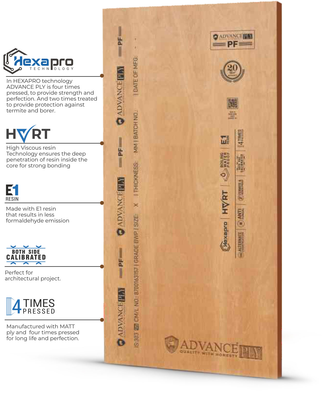 MADE WITH E1 GRADE RESIN, BOILING WATER PROOF, BWP GRADE, IS:303, BONDED WITH HURT RESIN, BOTH SIDE CALIBRATED, ALTERNATIVE CONSTRUCTION