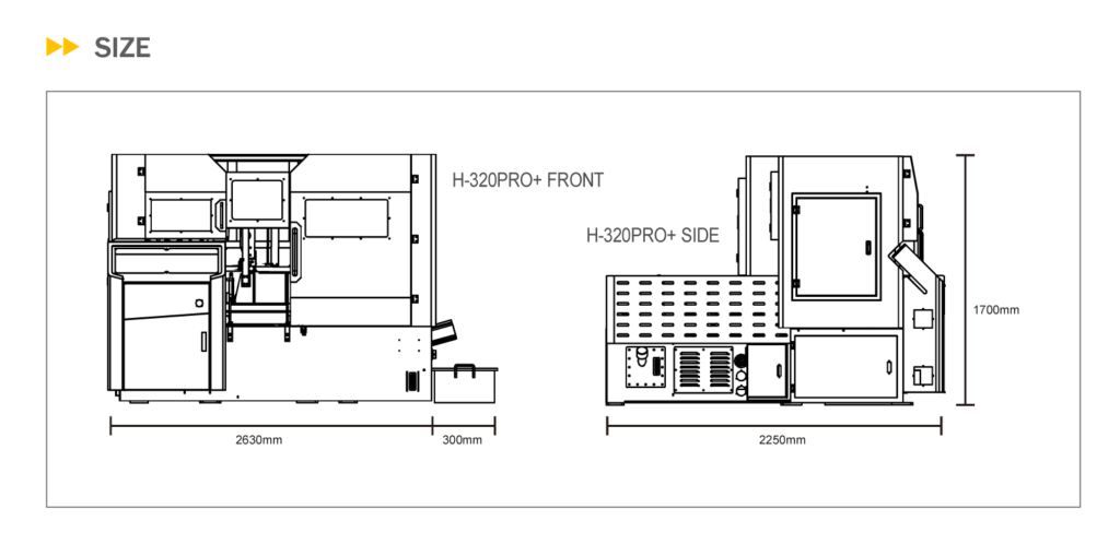 | Machine size (mm) | 2250 × 2300 × 1550 | 2250 × 2630 × 1650 | 2250 × 3100 × 1950 |